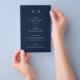 These elegant, modern wedding menu cards or rehearsal dinner menu cards feature a simple dark navy blue and white text design that exudes minimalist style. Add your initials or monogram to make them completely your own.