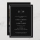 These elegant, modern engagement party invitations feature a simple dark black and white minimalist text design, with a classic frame at the border. Add your initials or monogram to make them completely your own. The back of the invitation features your favourite personal photo, plus a scannable QR code.