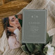 These elegant, modern wedding save the date cards feature a simple sage green and white minimalist text design, with a classic frame at the border. Add your initials or monogram to make them completely your own and add your favourite personal photo on the back.