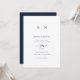 These elegant, modern wedding invitations feature a simple dark navy blue and white text design that exudes minimalist style. Add your initials or monogram to make them completely your own. The back of the invitation is solid navy.