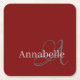 Minimal And Simple Red Monogram and Name Square Paper Coaster
