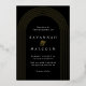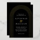 Simple and elegant wedding invitations with a thin lined metallic arch framing your ceremony details. Modern black with gold foil.