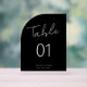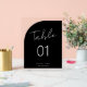 Minimal Arch Shape Brush Script Black Table Number Acrylic Sign