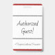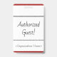 This simple badge design features the message "Authorized Guest!", and a customizable company name or other custom message. A badge like this could be used to identify that somebody at a workplace or business is an authorized guest/visitor. [~Z0000307]