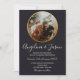 Simple, elegant, minimal, modern black and gold wedding invitation with chic purple back side, and photo of the couple.