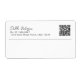 Modern and professional black and white business shipping label featuring a simple and minimal design with your name in an elegant script and your return address in contemporary sans serif font in a minimalist layout. To the right is an optional QR code. If you prefer, the QR code may be removed in the design editing tool.