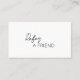 Modern and professional black and white business referral card featuring a simple and minimal design with "Refer a Friend" in an elegant script and contemporary sans serif font. The back has the referral form, your contact info and optional QR code in a minimalist layout. If you prefer, the QR code may be removed in the design editing tool.