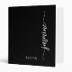 Elegant Modern Clean Black Minimalist Monogram Name Signature Script Custom Personalized Cookbook Recipe Binder. These design featuring your first name in a pretty hand lettered style swash tail font signature typography (or calligraphy) white script on black colour background. These are easy to customize it. Great stylish feminine housewarming gift, also for birthday, wedding, mother’s day, bridal shower party and It’s for the girl who loves simple modern things.