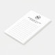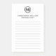 A professional lined notepad with a minimalist monogrammed design in a black and white colour palette. Custom name and title, role or custom text presented on a simple white background. Personalize using the fields provided or use the 'message' button to contact the designer for help.