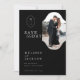 A timeless, classic, and elegant wedding save-the-date card with a modern minimal aesthetic in classic black and white. Simple elegant monogram crest with simple typography arranged in a modern layout. The photo is displayed in a unique photo frame to match the couple's monogram crest. **All colours can be changed to suit your wedding colour preference. Check out our other matching wedding items for this collection.