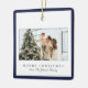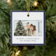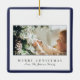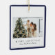 Minimal Blue Border Photo Elegant Christmas Ceramic Ornament