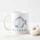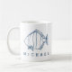 NewParkLane - Custom nautical mug, featuring a simple, minimal fish line illustration in teal blue / indigo against a white background. With a modern, typography text template for your name or other message All text styles, colours, and sizes can be modified to fit your needs.