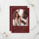 This simple, minimalist Save the Date card features a boho photo arch above the words "Save the Date" in elegant gold-coloured handwriting script, followed by the couple's names, wedding date and city in sans serif font on a burgundy red background. Add a more detailed message with additional information on the reverse.