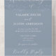 Minimal design branches Dusty Blue wedding invitations. Simple and clean. Background colour can be changed to fit your wedding theme. Elegant serif and calligraphy styled fonts.