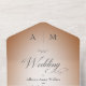 AVAILABLE WITH OR WITHOUT A QR CODE OR DINNER SELECTION OPTIONS. This design features a burnt orange rust background with a soft white blur oval centre. A monogram with the bride and groom's first initial completes it. Created by Simply Farmhouse Press.