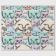 A simple and expressive set of cat faces drawn in bold black lines on soft pastel backgrounds. Clean, modern, and playful.