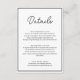 This elegant black and white wedding details enclosure card is perfect for a modern wedding. the simple design features elegant black calligraphy on a white background.