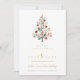 This elegant design features a winter Christmas tree in digital watercolor style, interpreted with a minimalist and chic approach. Its clean lines and soft colors convey harmony, serenity, and a contemporary touch, perfect for those seeking a refined and stylish design to announce their wedding during the Christmas season.