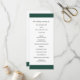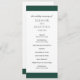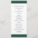 Modern jewel tone emerald green wedding program with a bold band across the top and bottom. Your names are in a classic serif font and your details are in a combination of a modern sans serif font and an elegant script. The back has a band along the bottom along with your monogram. This simple and minimal design with traditional wording is great for a formal wedding.
