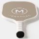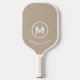 Masculine modern design features beige background with easy to use template for a single letter and name in stylish classic block typography. The design repeats on the reverse side. Perfect pickleball gift for him.