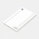 Write down notes and messages on this personalized post-it notepad in a no nonsense clean design with grey lines and your initial and name in black. The perfect notepad for the man in your life who wants a personalized minimalist look in black and grey against a white background.