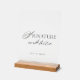Printed on premium clear acrylic and displayed in a natural wooden stand, this sign blends seamlessly into both indoor and outdoor wedding receptions. The transparent design creates a light, airy look while maintaining a luxury aesthetic.