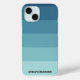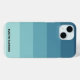 Beautiful elegant minimal custom phone case design featuring a colour block gradient (blue/cyan/teal/acqua) in pastel water hues and personalized monogram or name in sophisticated retro typographic font. Cute stripes aesthetics with grey big bold text.