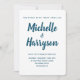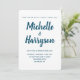 The minimalist wedding invitations combine elegant calligraphy with a blue and white colour scheme. Personalize the wedding invites with your wedding details.