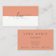 Minimal Coral Peach & white calligraph monogram Calling Card