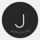 Minimal Custom Monogram Initial & Name Classic Round Sticker