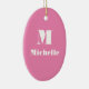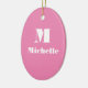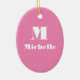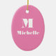Minimal Custom Name Initial Solid Colour Pink Ceramic Ornament