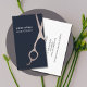 Minimal Dark Blue Faux Metal Scissors hair Busines Business Card