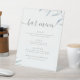 Minimal dusty blue greenery script rustic Bar Menu Pedestal Sign