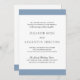 Modern all in one wedding invitation with a bold dusty blue band across the top and bottom. Your names are in a classic serif font and your details are in a combination of a modern serif font and an elegant script. The back has a band along the bottom along with your additional details; no separate enclosure card required. This simple and minimal design with traditional wording is great for a formal wedding.