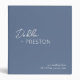 Modern dusty blue wedding planner binder featuring a simple and minimal design with the bride's name in an elegant script and the groom's name in a contemporary sans serif font. Below in the lower right corner are your event details. A minimalist design that goes well with any style of wedding.