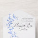 Elements: an elegant vine of in the style of vintage porcelain painting. Names appear in a modern script; other details in classic serif fonts Colours: blue, porcelain blue, delft blue, french blue, grey. Themes: elegant, modern, minimalist, garden, subtle, light, airy, timeless, vintage. Collection: Minimal Elegant Porcelain Floral Chinoiserie Wedding Collection Product Type: All-In-One Wedding Invitations