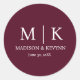 Minimal & Elegant Burgundy Monogram Wedding Classic Round Sticker