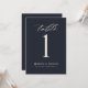 Elevate your wedding reception with these stunning, modern, minimalist, and elegant calligraphy script table numbers. Crafted in classic dark navy blue and bridal heath, these table numbers are the perfect way to guide your guests to their assigned seats. The elegant calligraphy script, featuring your chosen table number, your names, and the event date and location, adds a touch of sophistication and romance.