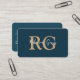 Minimal Elegant Monogram Navy Blue QR Code Business Card