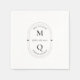 A simple, and elegant wedding napkin with stylish monograms and names suitable for a modern and minimalist wedding theme.