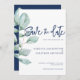 Minimal Eucalyptus Navy Blue Wedding Save The Date Invitation