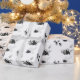 Minimal, modern monochrome festive holiday leaf foliage pattern design wrapping paper. Our modern black, white, and grey pattern wrapping paper is perfect for a stylish, modern, and non-traditional look. Wrapping paper features our hand-drawn rustic simple silhouette of cedar leaf foliage, pine needles, and pinecones arranged in a modern bold pattern print for a bold look. Artwork and pattern design hand-drawn by Moodthology Papery.