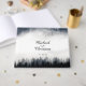 Minimal foggy spruce forest nature wedding. Landscape photograph of fog trapped in between the spruce forest making its way through the branches. Dark black and white. Pesonalizable names and everything you need you can customize.