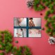 Four Photo Blue Silver Bokeh Birth Announcement Card