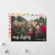 Use one horizontal photo with the subject preferably in the middle or towards the top. Make a unique and trendy Merry Christmas greeting with a tie dye and botanical pattern on the back. The colours are bright and cheery and the front highlights a large horizontal photo.