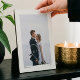 Newlyweds wedding photo keepsake plaque to always remember your special day and your love for each other. This elegant wedding day photo keepsake plaque features a simple minimal large single photo layout to display your own special wedding day photo with a thick white frame. White Heart and arrow are overlaid over the photo to personalize with your initials. Add your last name and established date below the wedding photo (note: the background colour can be changed to suit your preference.