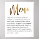 Inform your guests of their celebration menu options with the help of this simple design. For the header, I've used a casual, modern, handwritten font to create a graphic typography overlay simply reading "Menu". This image was embellished with a smooth faux gold foil effect for a festive result. Fill in the template blanks with your details to personalize the design. All layers were left unlocked so you can also click to further customize and re-position text or even change sizes or fonts. Change the background to any colour you prefer. Please do not hesitate to reach out for assistance with customization.