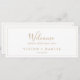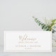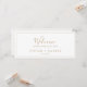 This minimal gold hanging seating chart welcome header is perfect for a simple wedding. The modern romantic design features classic gold and white typography paired with a rustic yet elegant calligraphy with vintage hand lettered style. Customizable in any colour. Keep the design simple and elegant, as is, or personalize it by adding your own graphics and artwork. The card prints on the front and back (double-sided). Please check the collection for the coordinating table number seating chart cards.