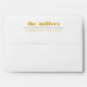 Wedding Custom Personalized envelopes feature graphic bold styleyellow return text on a classic white background.