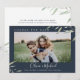 Modern chic watercolor botanical foliage greenery design with couples photo on colour editable navy blue background, simple and elegant, inform your wedding guests the updated information with this photo change the date wedding postponement card, great for modern wedding, rustic wedding, and botanical garden wedding in spring and summer.